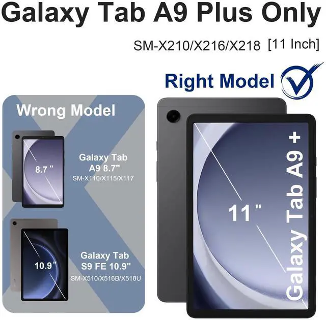CompatibilityMade for Samsung Galaxy Tab A9 Plus 11 inch ( 10.9 inch), 2023 model SM-X210/X216/218. Not fit any other tablets. ^^ Convertible Rotating StandScnioy Galaxy Tab A9+ case equipped a 360rotating and 180flipping stand which enable multiply viewing angles for your comfort surfing, reading, or sketching. ^^ Heavy-Duty Drop ProtectionWith premium shock-absorbing silicone bumper and rugged hard PC frame, this 3-layers protective case effectively save your Galaxy A9 Plus tablet for accidental drops or slips. ^^ Portable Shoulder Strap Come with a detachable and adjustable shoulder strap, easily carry your Galaxy A9 Plus tablet around, free your hands while youre on the go.