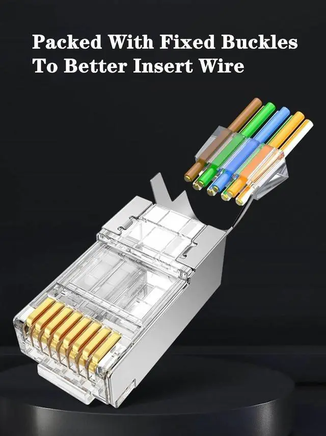Package Included: 30 PCS Pass Through Cat7 Cat6A rj45 connectors, 30PCS RJ45 strain relief boots, 30 PCS fixed buckles