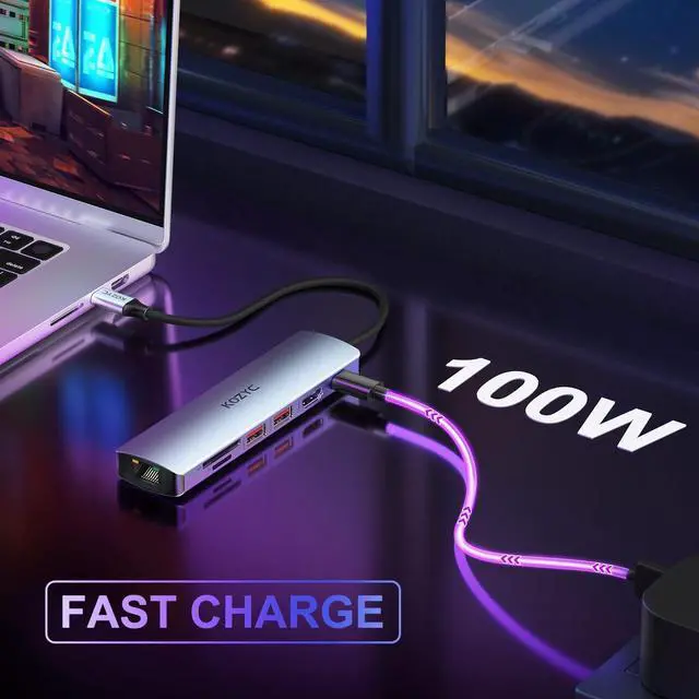7-in-1 USB-C HubThis KOZYC USB-C adapter features 1*HDMI 2.0 port, 2* USB 3.2 ports, 1*Ethernet port, 1*TF(Micro-SD) card slot, 1*SD card slot and 1*100W PD charging port, which is designed for expanding the devices with a Type-C port to getting additional connectivity options. ^^ 4K 60Hz ResolutionHDMI output resolutions max up to 4K@60Hz 4:4: 4, backward compatible with 1080p displays. Compatible with Thunderbolt 3 and DP 1.4 alt mode.