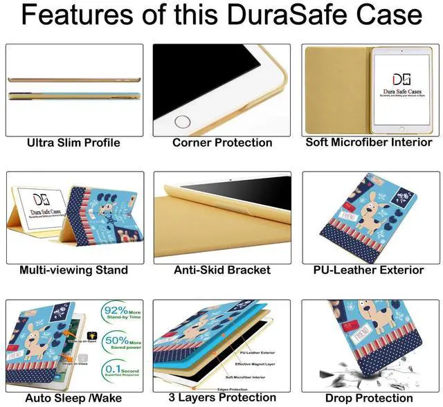 High Quality Lightweight Material & Excellent design makes this case feel very Stylish & Premium & Fully Protects your device against Shock, Abrasion, Scratch, Fingerprint, Slips, Dirt & Corner Damages. ^^ Viewing Angle -> Built-in Viewing Angle Stand makes it much more comfortable for Typing, watching videos, surfing web & reading while keeping both your Hands Free & avoids any Joint Pain. Allows unobstructed gesture swipes & enhances the beauty of your iPad due to its exclusive Bezel-Free design. Built-in Magnet also helps to hold your iPad steady while using the Dual-Angle Stand feature & prevents your iPad from falling.