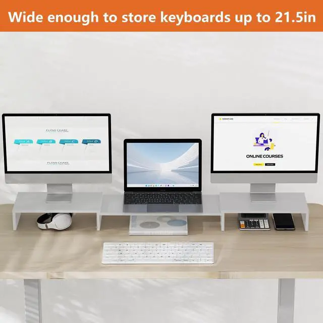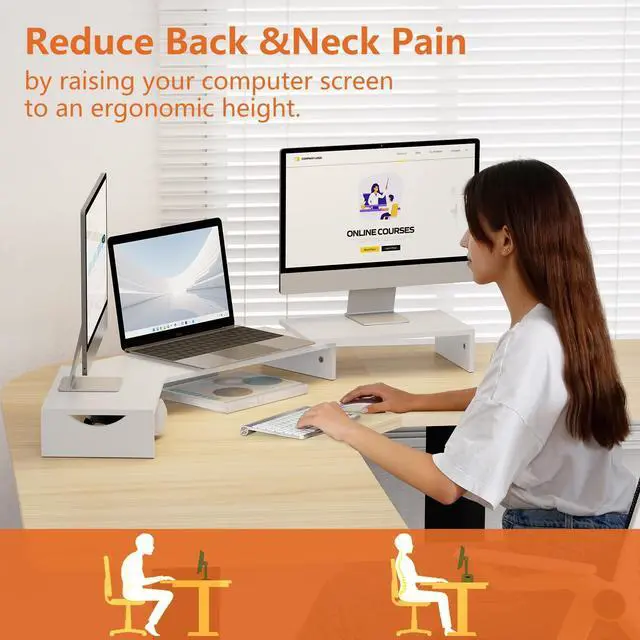 Ergonomic Design: The monitor riser features an ideal ergonomic design for easier operation, allowing you to raise the computer screen to a comfortable eye level, reducing the risk of neck and eye strain while providing a better viewing experience.