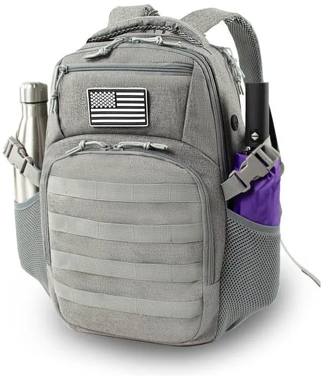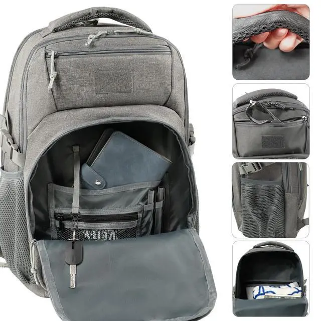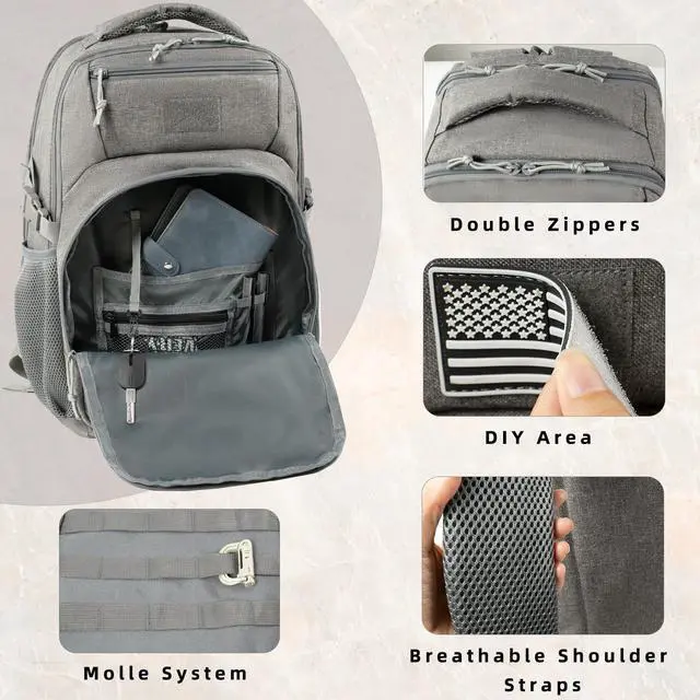 Multi-purpose Outdoor BackpackThe size of the travel computer backpack is 17.91 x 11.41 x 6.69 inches, with a capacity of 25L. It can hold a 15.6 -inch laptop and is made of strong waterproof fabric. It is equipped with padded straps and a good load-bearing compression system, making it very comfortable to carry. The MOLLE system is very convenient for attaching additional backpacks or equipment and is highly suitable for use by police officers, workers and riders. ^^ Multi-pocket Design Laptop BackpackThere are lots of pockets, including two for laptops compartment, you can put your laptop and tablet in simultaneously.