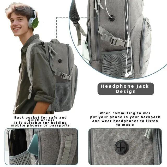 This backpack has a earbuds jack design on the upper right side, which can be inserted with earbuds for easy listening to music during the journey. It is suitable as a weekend travel backpack for both men and women. ^^ Comfortable and DurableThis fitness backpack features a high density 900D Oxford fabric high density material with a waterproof coating, a heavy duty zipper, and a triple stitching process that greatly increases the durability of the backpack. Each pocket has a double zipper. You can open up either way, which is great for a left-hander like me.
