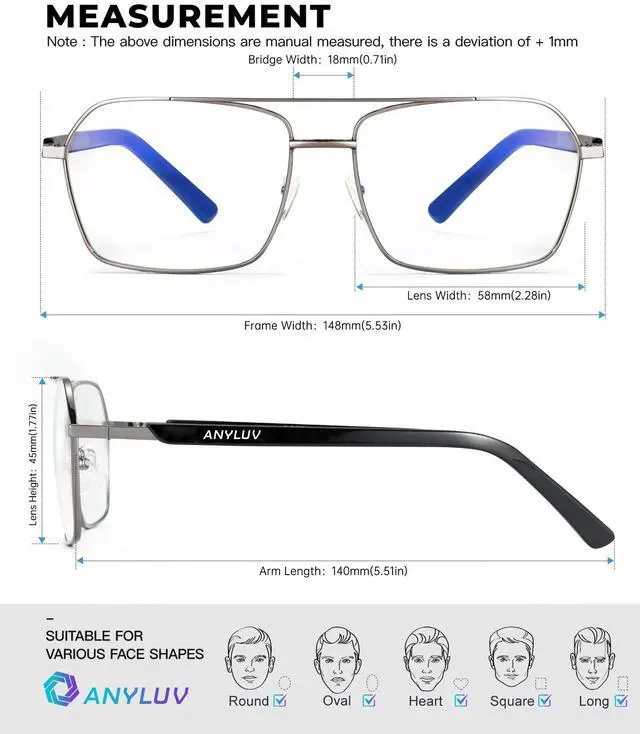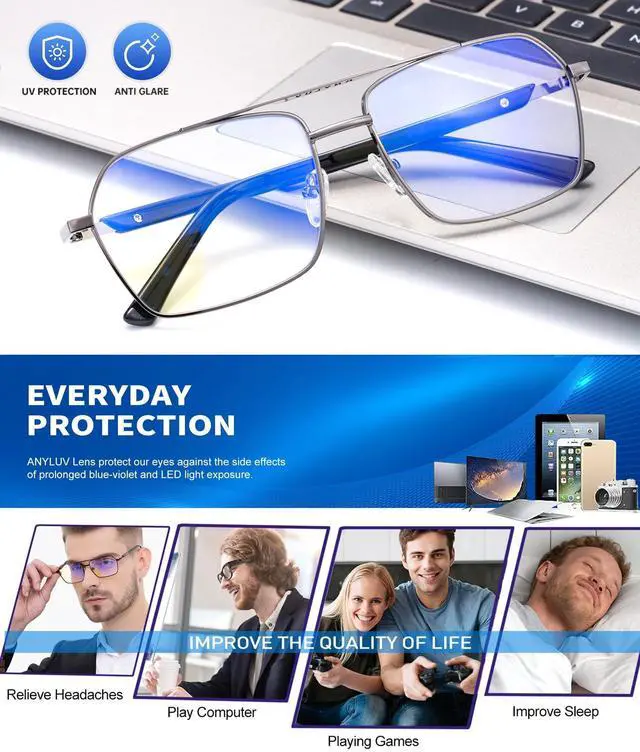 Light Blocking Rate: These blue light blocking glasses can filter 45% of high energy harmful blue light from computers and other devices, help release eye fatigue. When you reading books or looking on electronic screens for long time, these ANYLUV blue light glasses for men can help make eyes relaxed, meantime improve sleep quality ^^