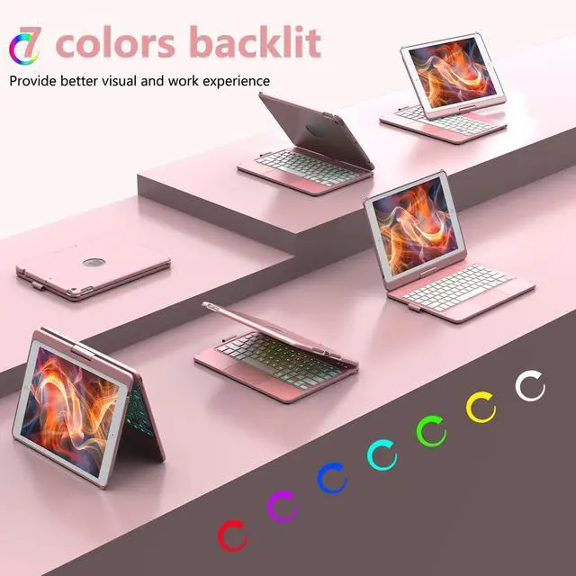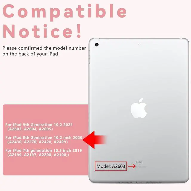 Number: A2197, A2200, A2198). Please check your iPad model before purchasing. Our keyboard case for ipad provides a range of features that enhance both functionality and protection for your iPad ^^ Keyboard Case for iPad 10.2 9th Gen /8th Gen /7th GenThe unique 360-degree rotation and 180-degree flip design allow you to adjust the iPad to any angle that suits your needs. Whether youre presenting a slideshow, watching your favorite show, or reading a book, this flexible design ensures you get the perfect viewing angle every time. The ability to flip and rotate the iPad easily transforms it into a mini-computer, making it incredibly versatile. Convenient to your life ^^ Touch Keyboard for ipad 9th