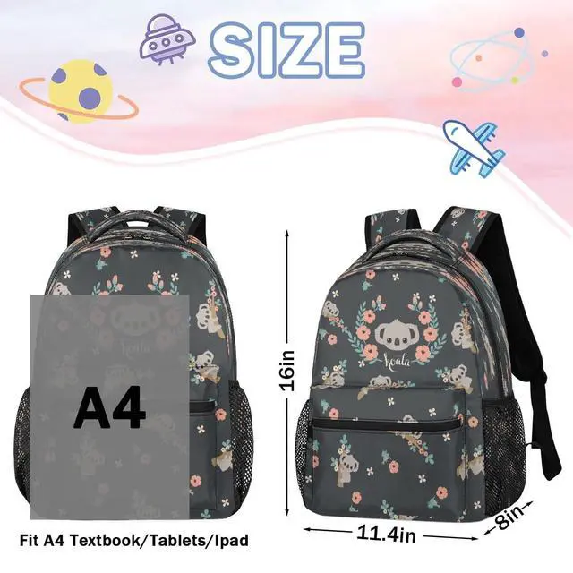^^ PRACTICAL COMPARTMENT: This koala backpack has 1 extra large main compartments, 4 inner small pockets, 1 front zipper pocket and 2 side pockets. 1 main compartment roomy for daily necessities, electronics accessories. Front zipper pocket and two side mesh pocket, suitable for storing keys, mobile phones, stationery, umbrellas, water bottles or other small objects, make your items organized. ^^