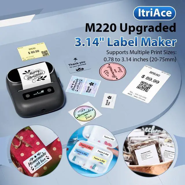 Inkless Termal Printing Technology: ItriAce M220 mini label maker feature inkless thermal printing technology with 203 DPI for clear and consistent print quality. Your labels will be legible, making them more professional and visually appealing. In addition, ItriAce labels are weatherproof, durable, heatproof, and stick firmly.