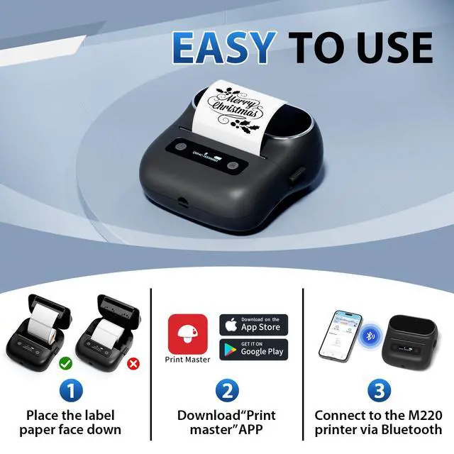 Portable and Convenient: This mini portable printer battery capacity of 2200mAh, a charge can print 36 rolls of labels; the new upgrade of the auto-sleep function allows the printer to stand 180s after the automatic shutdown, in order to save power. The label printer is compact and lightweight, weighing only 0.72 lb, more convenient to carry, whether in the office, shop or on the go, M220 mini thermal printer can meet your label printing needs anytime, anywhere