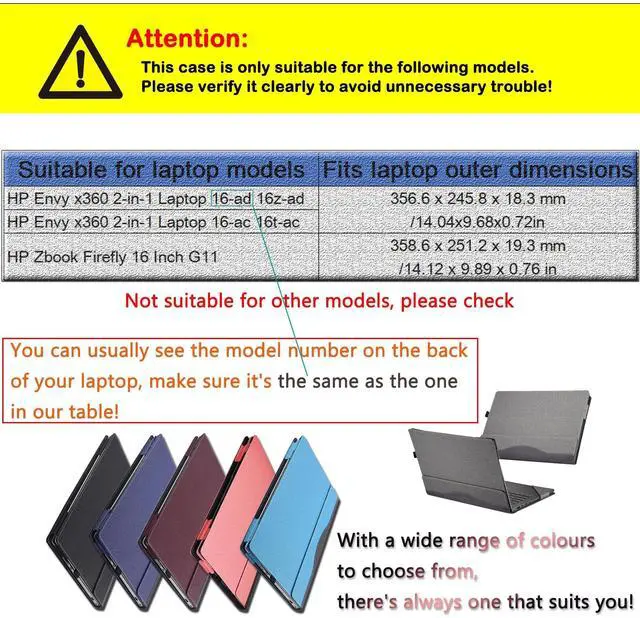 Suitable models: only for 16 inch HP Envy x360 2-in-1 Laptop 16-ad /16z-ad /16-ac /16t-ac & for HP Zbook Firefly 16 Inch G11. Does not fit any other model. Please check clearly.