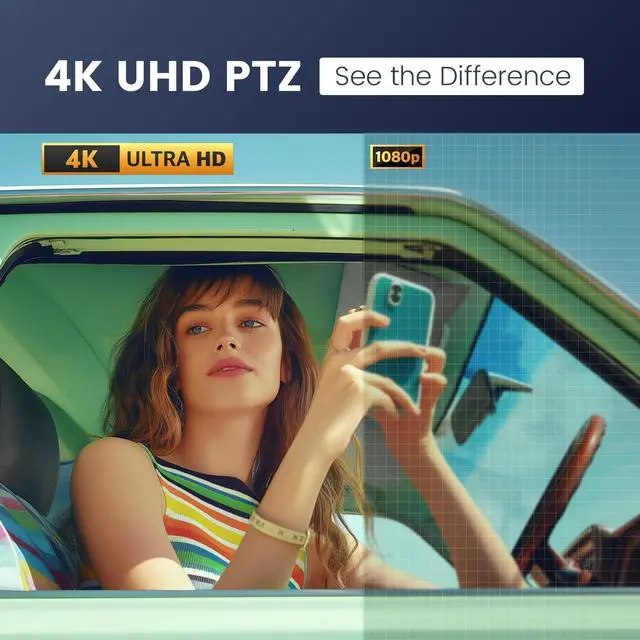 It has Auto-tracking, 6 gestures control, 5X digital zoom, 120 wide-angle FOV, 1/ 2.8" Sensor with 8.29 megapixels, Full UHD 4K@30fps resolution, which can rotate 350 horizontally (175) and 180 vertically (90). Quickly control pan, tilt and zoom by face-tracking, gestures control or remote control(0-9 preset positions). The MENU on the remote allows you to set the PTZ camera parameters. The RS232 & RS485 interfaces support joystick control. USB 3.0 Plug & Play. ^^ - / Gestures enable AI auto-tracking and 5X digital zoom: 'OK' to AI-tracking ON and enter multi-human tracking, 'V' to enter solo-tracking, 'L' to zoom-in(in solo-tracking), 'One' to zoom-out(in solo-tracking), 'Good' to enter multi-human tracking, 'Palm' to AI-tracking OFF.
