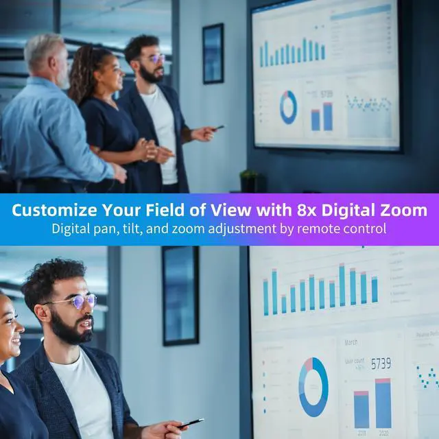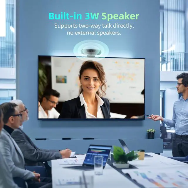 4K UHD Video Conference Camera ---- VIZOLINK V20 USB webcam is equipped with an 8-megapixel CMOS sensor and premium ultra HD image signal processor to deliver 4K UHD video streaming at 25 frames per second. True image restoration and rich details, perfect for video conferencing, live streaming, online teaching, gaming ^^ 3W Speaker & 4 Noise-canceling Mics ---- With 4 omnidirectional Noise-cancellation microphones, 3W speakers and upgraded beamforming algorithm, V20 computer camera can automatically filter out background noise and echo, keyboard typing and other environmental noises, which delivers a loud and clear voice (pick up within the distance up to 8m/26ft).