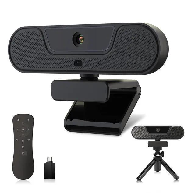 Drectly supports two way audio, no external speaker ^^ Remote Control & EPTZ Function ---- V20 PC web camera supports remote control. You can adjust the video footage according to the number of people and the environment with PTZ funtion. And you can easily customize your field of view with 8X digital zoom via the remote within 120 wide view angle. Meanwhile, the remote control also supports one key to video freeze, mute, manual focus and volume adjustment ^^ Autofocus & Light correction ---- This streaming camera supports Autofocus, which ensures a clear and crisp video without worrying about instability and blur.