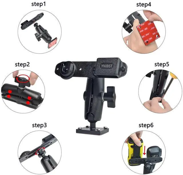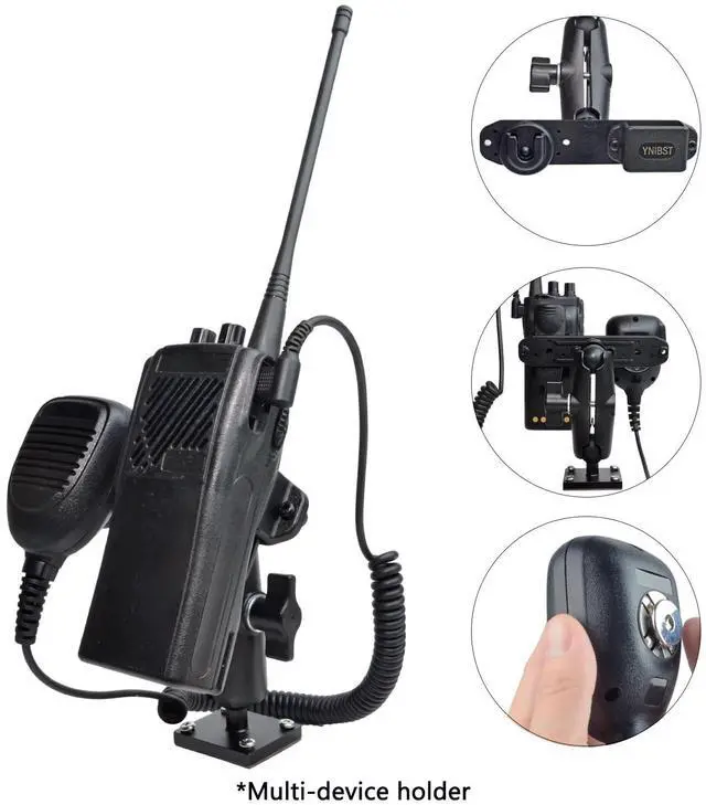 Multi-device holder-With itsmulti-device holderdesign, you can hold portable 2-way radio and CB speaker microphone at the same time. ^^ Drill mount base-This handheld radio holder comes with a drill mount base with pre-drilled holes, which is great for mounting into a wall, or drilling down to a table, console and dashboard. ^^ Stable mounting-It is very stable once installed with included screws and holds your walkie-talkie and CB mic firmly. The drill mount base also features adhesive bottom which helps to maximize stability. (The stickiness of tape will gradually increase over time and display perfectly after 24 hours.