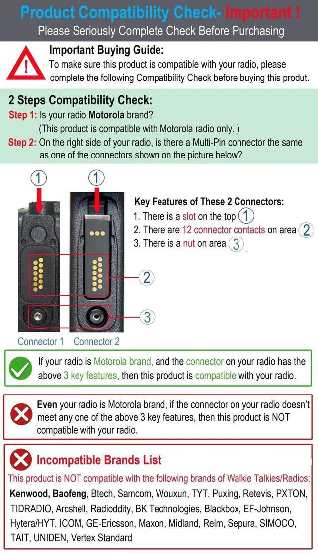 Warranty & Compatibility: 12 months worry-free warranty; Compatible with Motorola APX XPR 6000 XPR 7000 SRX series radios; Including APX 900, APX 1000, APX 4000, APX 6000, APX 6000LI, APX 6000XE, APX 7000, APX 7000XE, APX 8000, APX 8000XE, APX 8000H, APX 8000HXE, XPR 6100, XPR 6300, XPR 6350, XPR 6380, XPR 6500, XPR 6550, XPR 6580, XPR 7300, XPR 7350, XPR 7380, XPR 7550, XPR 7580, XPR 7350e, XPR 7380e, XPR 7550e, XPR 7580e, SRX 2200 and more. ^^