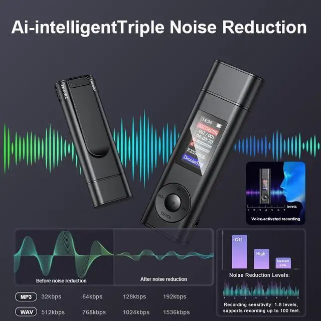 VOICE ACTIVATION: Smart recording feature automatically starts capturing audio when sound is detected, ensuring no important moments are missed ^^