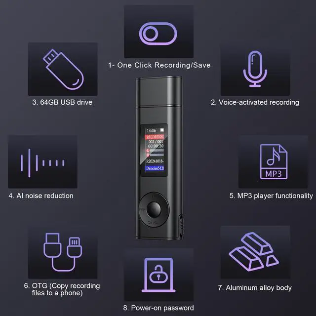 STORAGE CAPACITY: 64GB of built-in memory allows for hundreds of hours of high-quality audio recordings, perfect for extended use ^^
