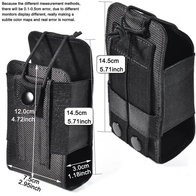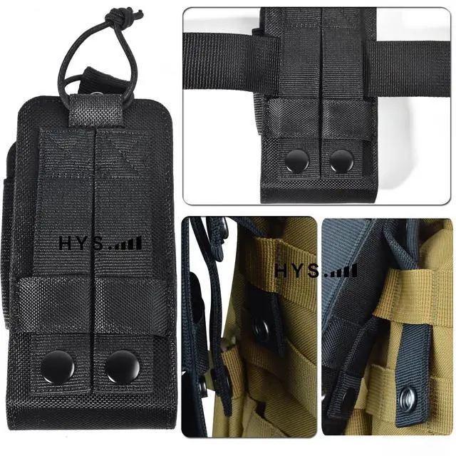 Measuring 145mm ( 5.71" ) x 75mm ( 2.95" ) x 30mm ( 1.18" ), this universal radio holder offers a compact size that's easy to carry and transport. It can hold a 5" to 10" tall two-way radio, providing a snug fit that ensures maximum protection while still allowing easy access to controls and buttons. ^^ The MOLLE NYLON POUCH Keep your two-way radio safe and protected with our durable nylon case. Perfect for Holds Motorola HT90 MTX 900 GP328 PRO5150 GP320 GP340 MTX960 GP88S Amateur Radio, for President Randy FCC/ Cobra/Midland Handheld cb radio ^^ HYS MOLLE pouch designed to help professionals and tactical enthusiasts organize and access their gear easily.