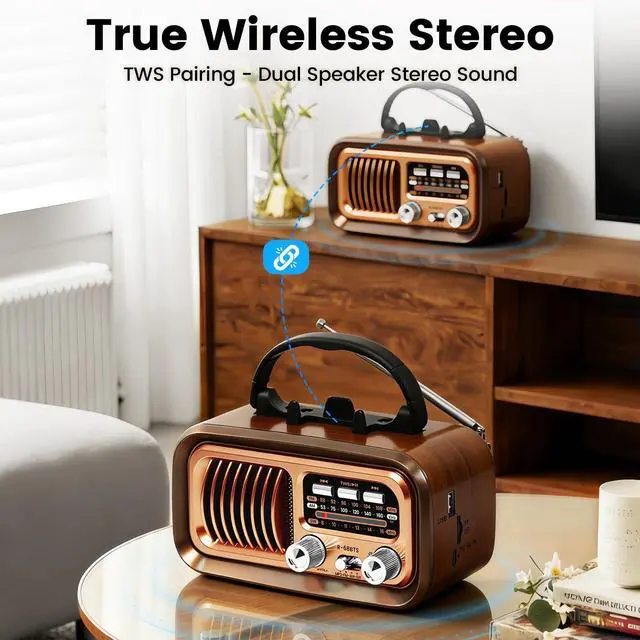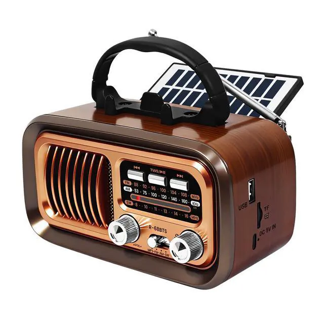 Bingxue Retro Bluetooth Radio with Solar/D Battery Operated/USB Rechargeable/DC 5V Charging, AM/FM/SW,TWS, USB/TF Playback, Phone Stand & Portable Speaker - Perfect for Outdoor/Home Use