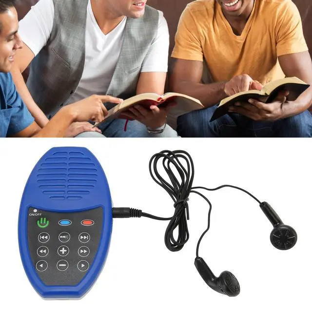 [Convenient To Use] The Bible reader supports intelligent memory point reading, easy to select and listen. Three sets of indicator lights (play,, read),. ^^ [Long Battery Life] Built in rechargeable polymer lithium battery 350mah, long standby time over 15 hours, can be used indoors and outdoors. ^^ [Large Volume And Memory] Bible electronic reader offers large volume sound, adjustable. Built in 4G capacity and product encryption so customers can't copy files themselves. ^^ [Compact And LED Light Design] Electronic reader is designed to be compact, thin and easy to carry.