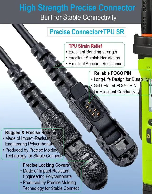 Strength Precise Connector: With TPU (Thermoplastic polyurethane) rubber jacket, engineering Polycarbonate housing, internal hard core and gold-plated POGO-pin, assembled by precise soldering technology and molding technology, the connector is built for stable connectivity and excellent operating life.