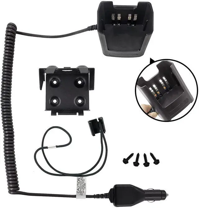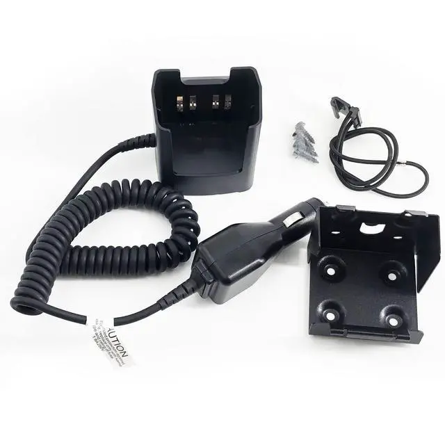 Package contents: 1x Voltage regulated vehicular charger adapter 1x Custom charger base 1x Mounting bracket 1x Nylon strap 1x Coil cord