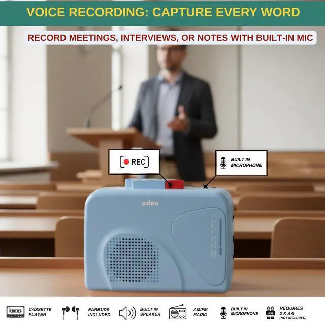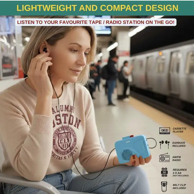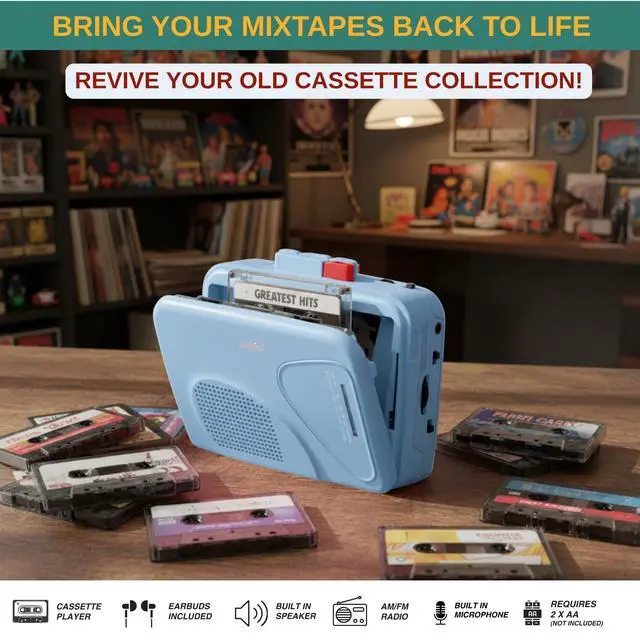 This cassette tape player is designed for anyone who wants to enjoy classic mixtapes, old recordings, or radio stations with reliable analog sound. It combines a cassette tape player, tape voice recorder, and radios portable am fm into one compact device. Play your favorite cassette tapes through the built-in speaker or the included wired earbuds, and experience warm audio playback similar to a traditional walkman cassette player. The player is easy to use with simple buttons for play, stop, rewind, fast forward, and record. The automatic stop system helps protect tapes and prevents unnecessary wear.