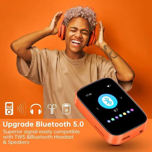 Bluetooth 5.0 mp3 playereasy connect with Bluetooth speaker, with Bluetooth 5.0 means faster transmission speed, stable performance and higher anti-interference ability. You can play music through Bluetooth speakers or Bluetooth headphones.