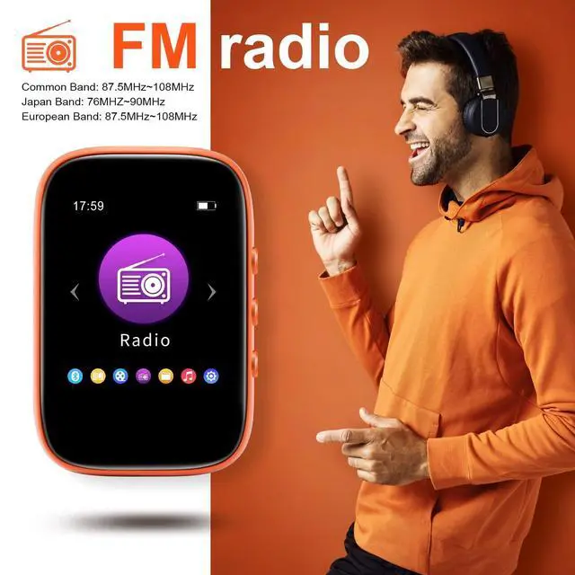 (Please note: cannot be paired with a mobile phone) ^^ Mp3 player with clip-on and light weightsuper fit for sports, only 32g ( 1.129 Ounce) super light weight more portable and with the size: 2.361. 570.67 (inch) make this mp3 player easy to put in your pocket when you walking or jogging the mp3 player BORN FOR SPORTS ^^ Bluetooth 5.0 mp3 playereasy connect with Bluetooth speaker, with Bluetooth 5.0 means faster transmission speed, stable performance and higher anti-interference ability. You can play music through Bluetooth speakers or Bluetooth headphones.