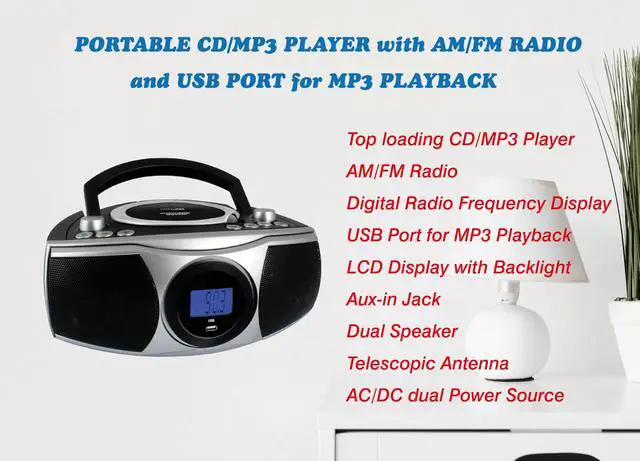 Portable CD/MP3 Player and USB: Top Loading CD Player: Supporting CD/CDR/CDRW/MP3 with outstanding stereo sound quality. Also, play your favourite MP3 music on a USB flash drive through USB port.