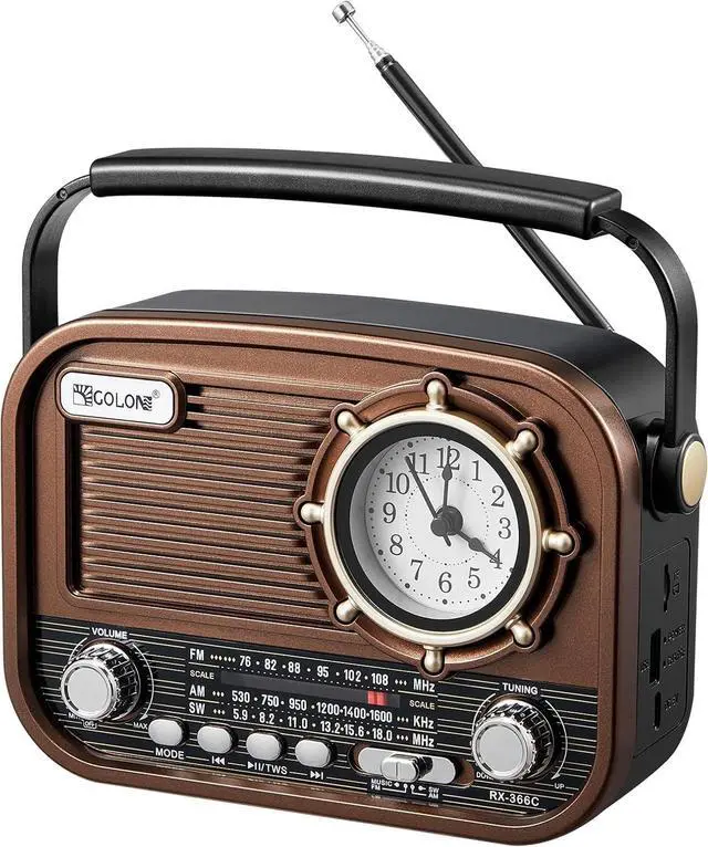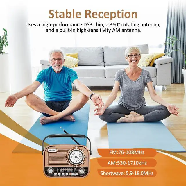[AM FM SW Radio with High Sensitivity] This portable radio supports AM (5301710kHz), FM (87108MHz), and Shortwave ( 5.918. 0MHz), effortlessly covering most local and international stations. The built-in advanced DSP chip and long telescopic antenna provide stable, crystal-clear reception for news, weather, talk shows, and sports games. ^^ [Vintage Looking Bluetooth Speaker & MP3 Player] More than just a traditional radioits classic retro design doubles as a wireless speaker. Simply connect your smartphone via Bluetooth to stream music, or plug in a USB flash drive/TF card to enjoy your favorite MP3 playlists anytime, anywhere.