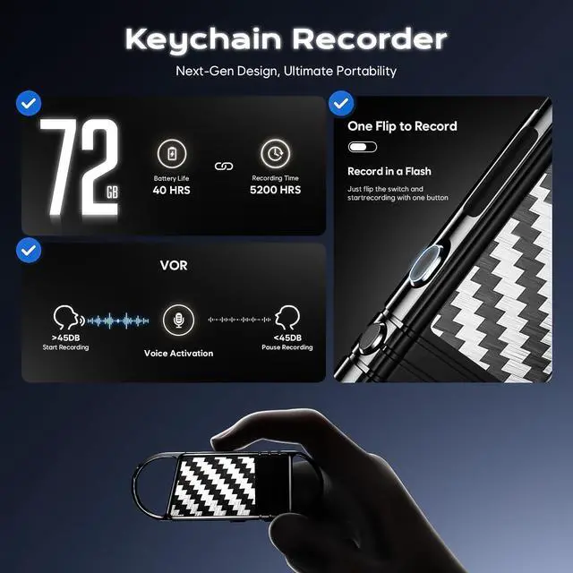 The user-friendly design supports allowing you to carry audio recorder around and hang it on your keychain, backpack or jeans