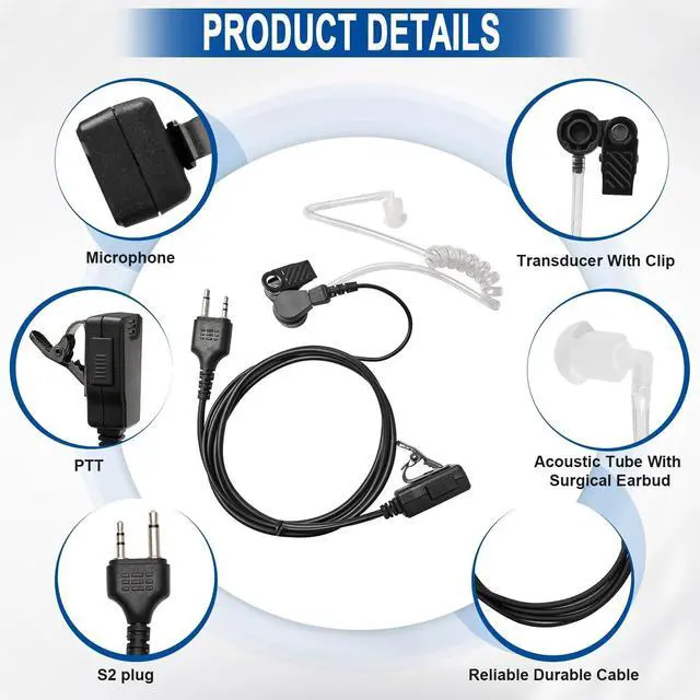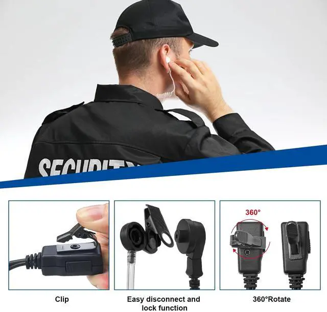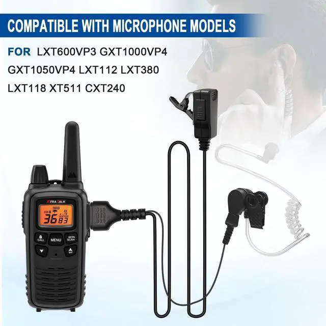 Acoustic Tube Earpiece for two way radio GXT1000VP4 LXT500VP3 GXT1050VP4 GXT1000XB etc. Compatible with GXT/LXT/XT/CXT Series Walkie Talkies ^^ Made of sturdy PU cable material, it has super strong bending strength, wear resistance and scratch resistance, which can achieve long-term use ^^ Equipped with premium acoustic tube earbud, clear sound can be heard even in noisy environments. no muffled sound or crackling and keep your conversation private ^^ The mic clip conveniently clips to your lapel, shirt and set your hands free to use your radio device communication ^^