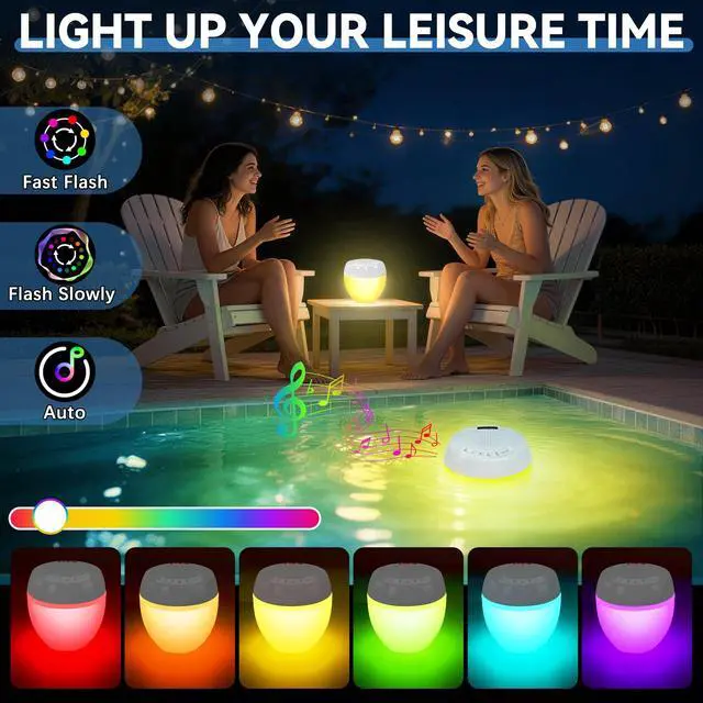 • : Pair two floating speakers for mind-blowing surround sound to create immersive surround sound that single pool speakers cant match. Feel the beats wrap around your pool areacrisp highs, rich bass, and balanced audio that turns casual gatherings into epic parties. The synchronized sound fills every corner, perfectly suited for gaming, music, and movie playback scenarios