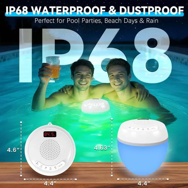 pool day ^^: Pair two floating speakers for mind-blowing surround sound to create immersive surround sound that single pool speakers cant match. Feel the beats wrap around your pool areacrisp highs, rich bass, and balanced audio that turns casual gatherings into epic parties. The synchronized sound fills every corner, perfectly suited for gaming, music, and movie playback scenarios ^^ 68