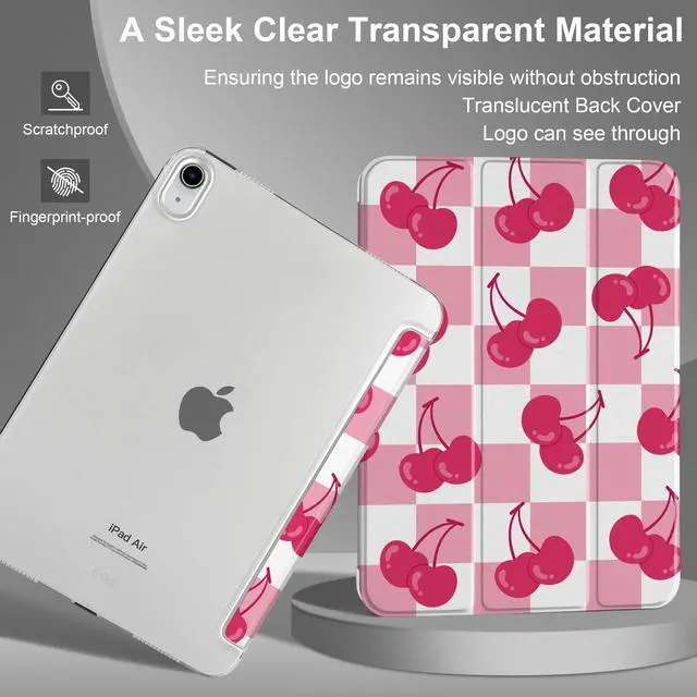 DONGKE for iPad Air 11-inch M4 2026 M3 2025 M2 2024, iPad Air 5th 2022 / 4th Gen 2020 10.9-inch, Slim Foldable Stand Hard PC Translucent Back Shell Smart Cover - [Auto Wake/Sleep] - Pink Checker