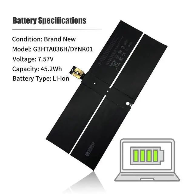 Manufacturer Warranty: One-year ^^ Replacement for Part NumberDYNK01 G3HTA036H ^^ Compatible with Laptop ModelsMicrosoft Surface Laptop 1st Gen 1769 2017 Series, Microsoft Surface Laptop 1769 13.5 '' Series, Microsoft Surface Laptop 1782 13.5 '' Series ^^ Quality & SecurityINTIFO uses only OEM grade quality components. All products are certified by CE, FCC, UL, RoHS for safety. ^^ TipsBefore placing an order, we recommend that you open the back cover of your laptop, check and confirm your original battery model and appearance. Compare with our battery picture, confirm especially the position of the connector and the length of the cable.