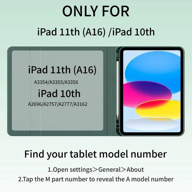 • Compatibility Model: This iPad case with keyboard is designed for iPad A16 2025 (A3354/A3355/A3356), iPad 10th Generation 2022 (A2696/A2757/A2777). NOT compatible with any other iPad models. Please check the back bottom of your iPad to find the model number before placing order