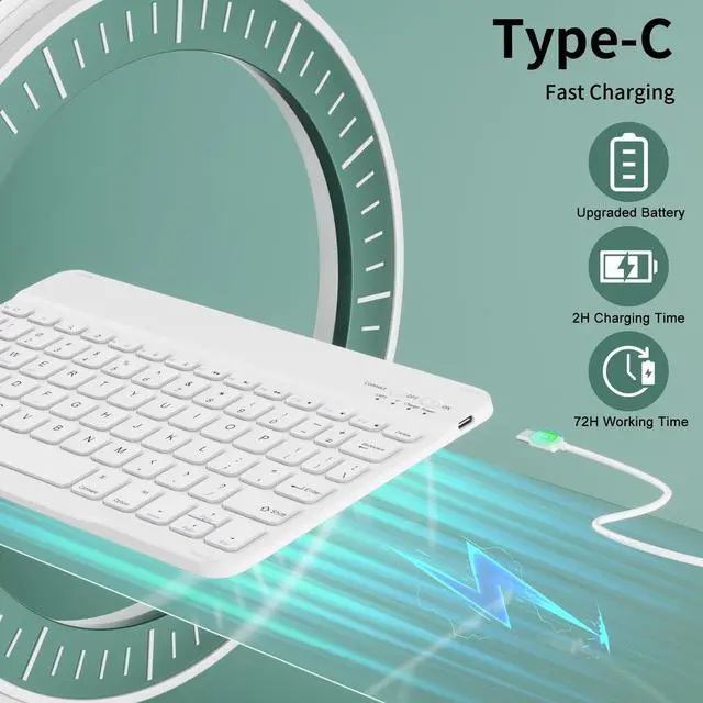 Rechargeable design: BT auto-connects in 3 seconds, stable connection up to 33ft (10m) - no lag for remote meetings/essay typing. Built-in 400mAh battery, 2hrs full charge supports 30 days standby or 72hrs continuous use (USB-C cable included) ^^