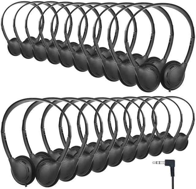 You will get 20 pack headphones bulk which can be used in schools, classrooms, airports, etc. ^^ Headphones for class set is not easy to break, the L-shape jack design makes the jack stronger and not easy to be damaged, the 3.5 mm jack can be adapted to your pad, phones, computers and other devices ^^ The classroom headphones is only 1.69 ounces, and the soft earcups, so you won't feel uncomfortable even if you wear them for a long time ^^ The bulk headphones for Classroom can be rotated 90 for easy storage and better fit your ears ^^