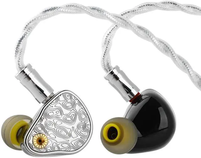 balances every range: bass hits hard but stays tight, mids remain true to the source, and highs stay crisp without fatigue. ^^ + & Twilight-DS features a CNC-machined titanium alloy chassis for rugged durability. Its faceplate uses Damascus steel with distinctive layered patterns, refined via hand-polishing, acid etching, and precision machining. The back-cavity is made of medical-grade high-precision 3D printing resin. This enhances durability, stabilizes acoustic architecture, and shapes earpieces for an ergonomic, fatigue-free fit ^^ + Equipped with a 0.78 mm 2-Pin detachable design, the cable is easy to replace or upgrade. It blends OCC ( 180.08 strands) and alloy copper ( 180.08 strands), plus braided silver foil shielding, to boost durability and keep signals clean. The 4.4 mm balanced plug minimizes signal loss, blocks electromagnetic interference, and ensures stable, high-fidelity transmission, so your audio stays pure, from source to ear.