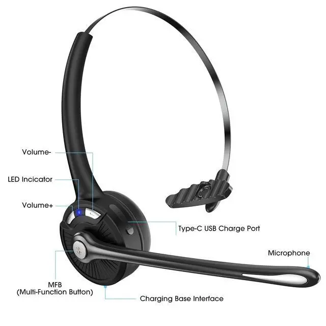 ^^ ULTRA-LIGHT & SUPREME COMFORTAt just 0.09 pounds, ultra-light wireless headset with padded ear cushions and flexible headbands, feels almost weightless and provides you comfortable wearing experience for intensive all-day use. Designed with stretchable headband, you can adjust it to a suitable width according to your head's size. The wireless on-ear headset can be worn over the right or left ear according to your preferences. ^^ LONG BATTERY LIFE Caymuller trucker wireless headset provides up to 12 hours continuous talking time and 160 hours standby time with a single full charged in just 2 hours.