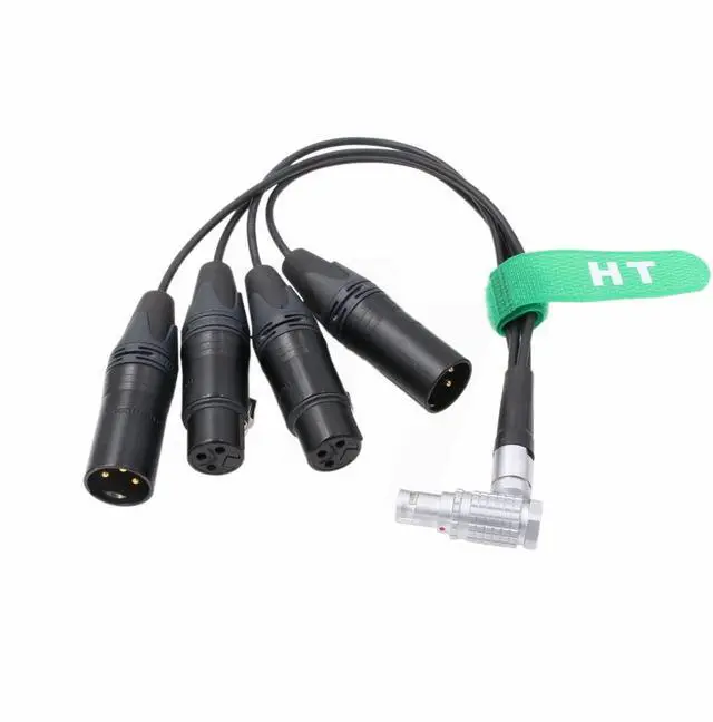Connectors: right angle 10-pin to dual XLR 3-pin male (output) and dual XLR 3-pin female (input)