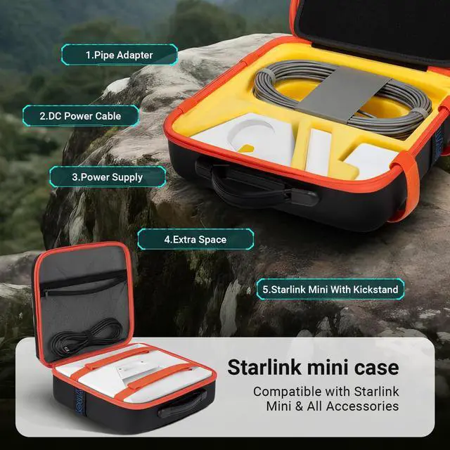 ^^ Shockproof & Water-resistant: This Water-resistant travel case compatible with Starlink Mini is built with rugged hard-shell EVA construction that effectively resists water splashes and protects against accidental drops, keeping your device secure and ready wherever adventure takes you. ^^