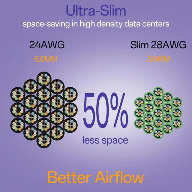 • Ultra-Slim: Slim CAT6 patch cord is 50% thinner than standard networking cables. Slim Cat6 UTP patch cable is designed for space-saving in high density environments such as data centers telecommunication and server rooms.