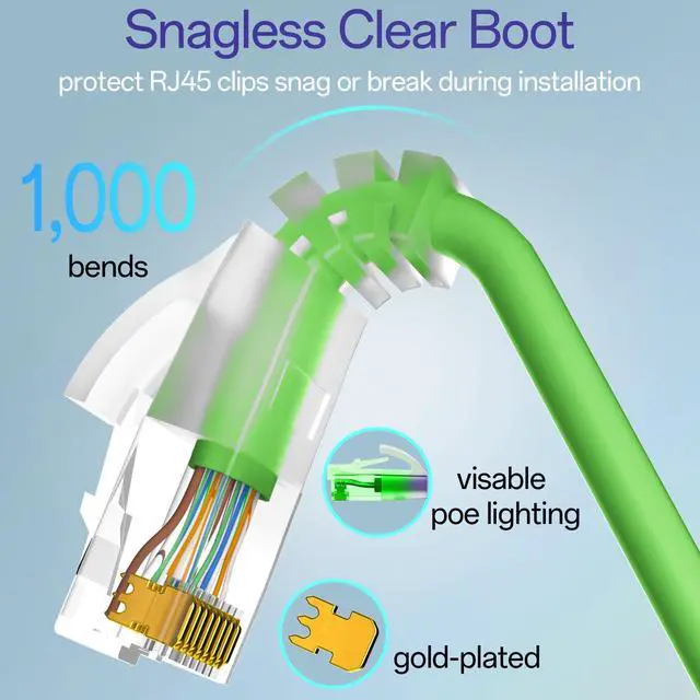^^ Snagless Clear Boot: Snagless clear boot of ethernet cable slim is designed to protect the RJ45 clips during installation, to avoid snag or break as pull them through narrow spaces. Cat6 1 foot patch cable with clear boot is perfect for use in PoE applications for lighting visable. ^^ Clean Up