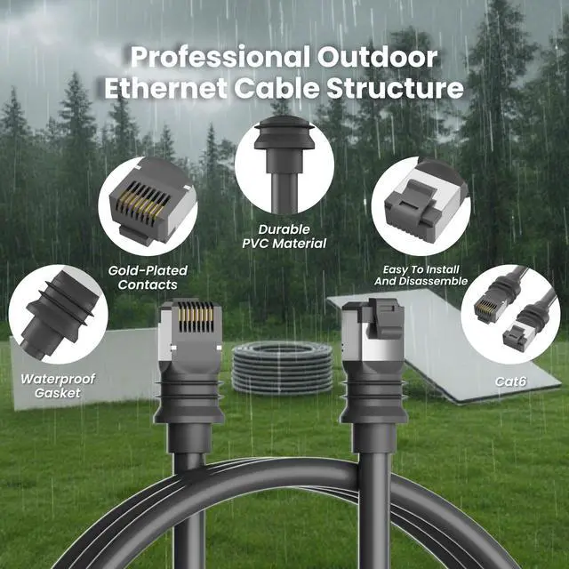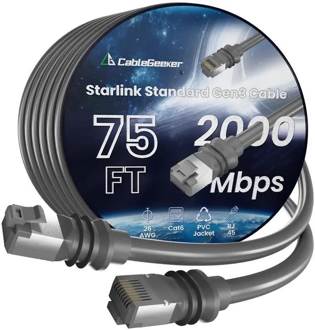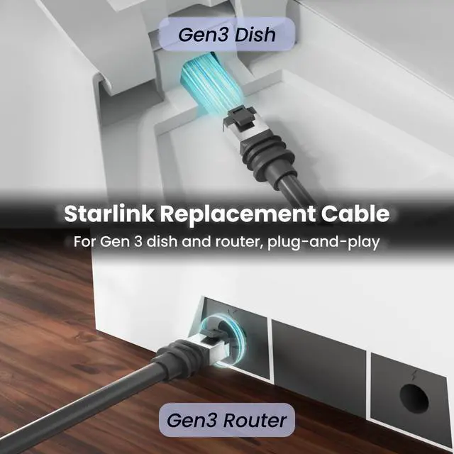 Compatible with Starlink Gen 3. Designed specifically for Starlink Standard Gen 3 Dish and Router, this cable ensures perfect connectivity. It is not compatible with Standard Actuated (Gen2), High Performance, or Flat High Performance models ^^ Premium Construction. Features a shielded layer, pure copper conductors, and 26AWG wiring encased in aging-resistant rubber for durability and stable signal transmission ^^ High-Speed Performance. Supports bandwidth up to 2000 Mbps with Cat6 Ethernet standards and gold-plated contacts, enabling smooth streaming and lag-free data transfer ^^ All-Weather Durability. Waterproof, UV-resistant, and built to withstand extreme temperatures, making it ideal for outdoor installations in various weather conditions ^^ Easy Setup & Versatile Use.