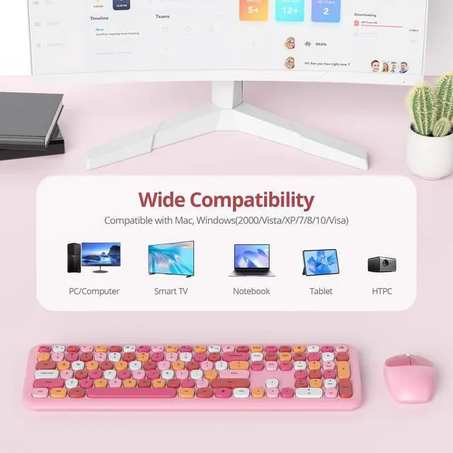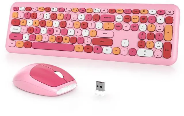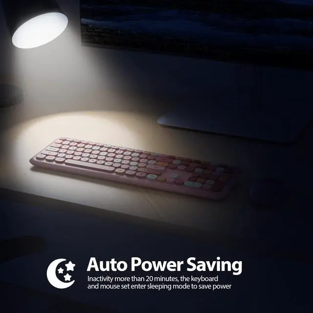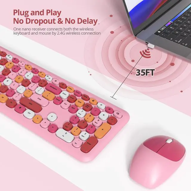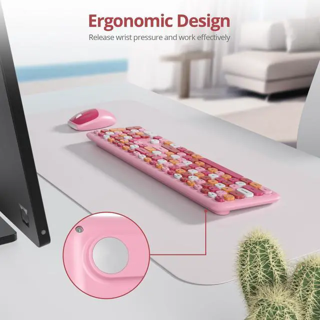 Press any key to activate the device. ^^ 110-Key Full Size Pink keyboard and mouseThis cute typewriter wireless keyboard with numeric keypad uses noise-canceling keys, while the retro round concave key caps fit the shape of your fingertips and can be pressed comfortably, just like Like on old typewriters, your hands won't get tired even if you work for a long time. ^^ Widely Compatibilityretro wireless keyboard and mouse combo, Works with your PC, desktop computer, laptop. compatible with Windows 2000 / XP / 7 / 8 / 10/ vista.