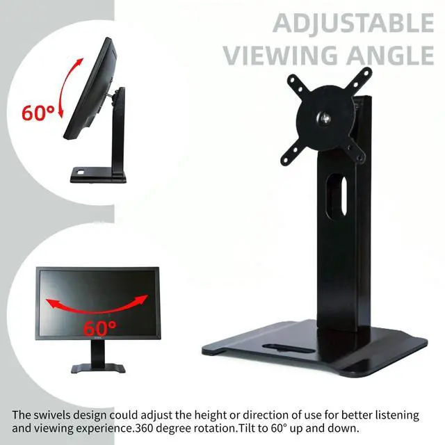 This metal desktop mount is designed for Show15 and Show 21. (device and plug are not included). it would be more convenient to install your device. it is also suitable for Universal monitors 13-32" Screen. ^^ The swivels design could adjust the height or direction of use for better listening and viewing experience. 360 degree rotation. Tilt to 60 up and down. ^^ The desktop mount is made of heavy duty metal sheet with surface treatment. The sturdy construction ensures stability and durability. Anti-slip EVA pads on the bottom of the metal base to avoid sliding and protect the desk from scratching.