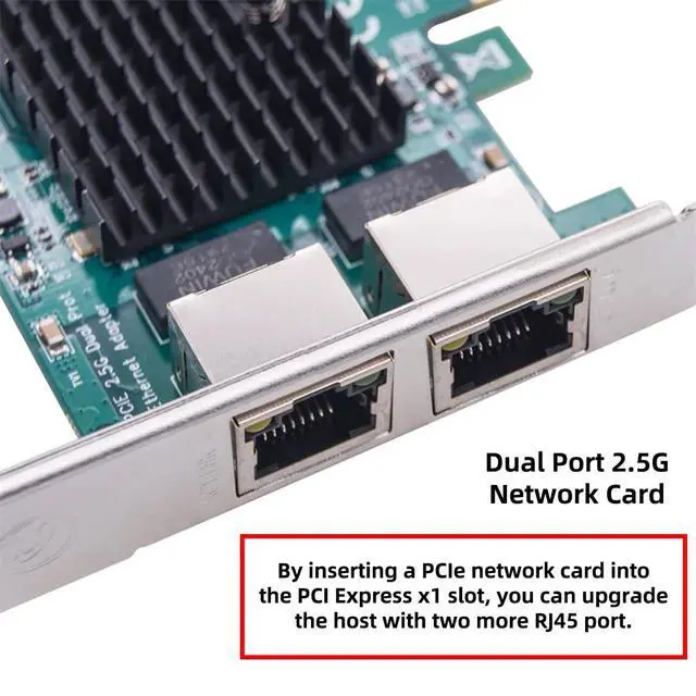 Dual Port 2.5G Network Card; By inserting a PCIe network card into the PCI Express x1 slot, you can upgrade the host with one more RJ45 port. It's a perfect choice for a Desktop PC that is fewer network ports or network port failure to connect to the wired network.