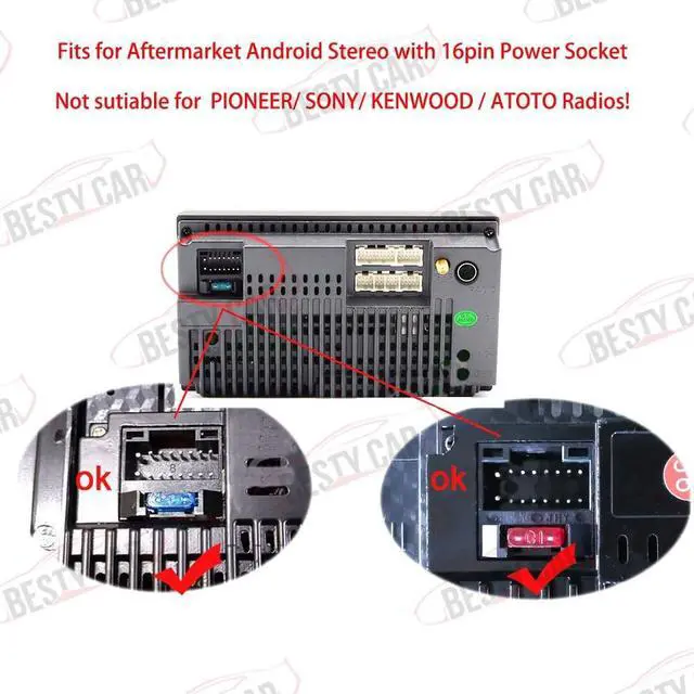 CANbus box model: RP5-CH-001Support factory navigation&OEM backup camera and steering wheel control. NOTICE1. This car radio power harness is not suitable for Pioneer/Sony/Keenwood radios. 2. This car retrofit wiring harness is only suitable for the aftermarket Android radio with universal 16pin power socket like shown in description3. If the power harness is provided with CANBUS decoder, pls choose the correct car model in the stereo's setting. 4. The compatibility list is for reference only. Please check the appearance of the product before placing an order to determine if it is suitable for your stereo.